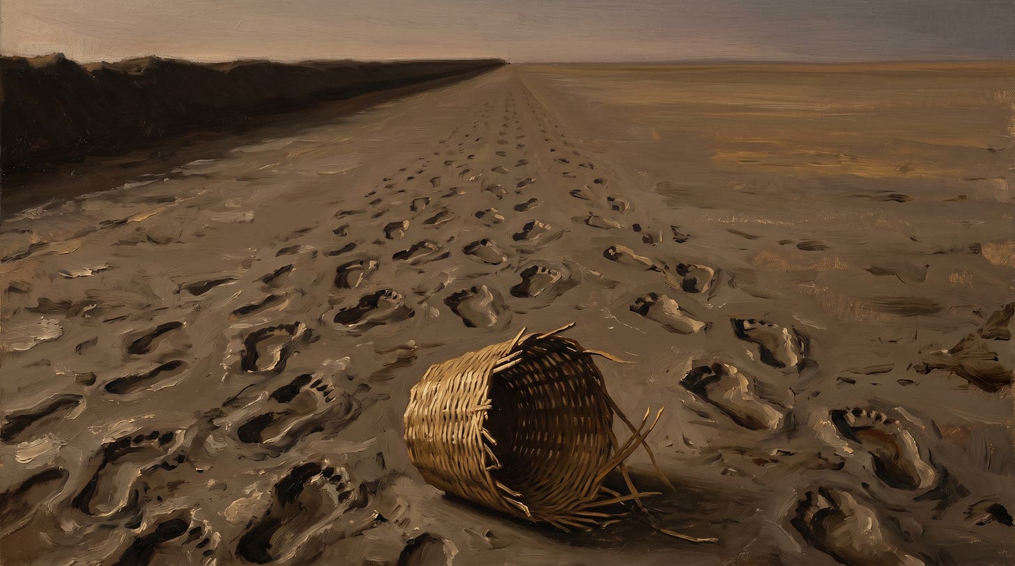 He walked east into the Sinai with the clothes he stood in and shed them as he went. The gold cartouche first. Then the linen. Then the court sandals, traded at a desert outpost for rough cloth worth a tenth as much. The Prince of Egypt died at the border. The man who crossed was nobody.