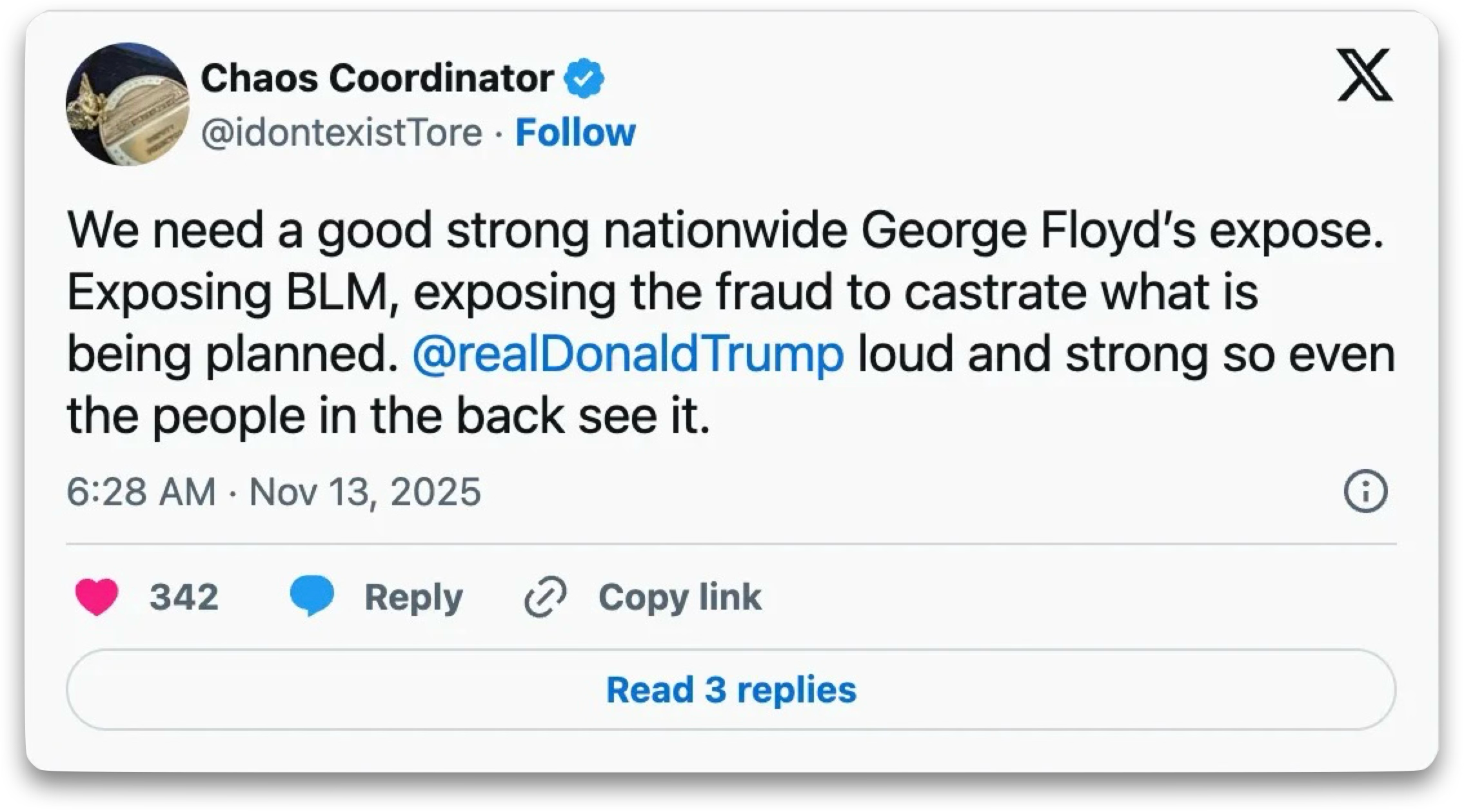The networks are reactivating. The same coordination. The same funding sources. The same operational cadence that turned Floyd’s death into election infrastructure in 2020.