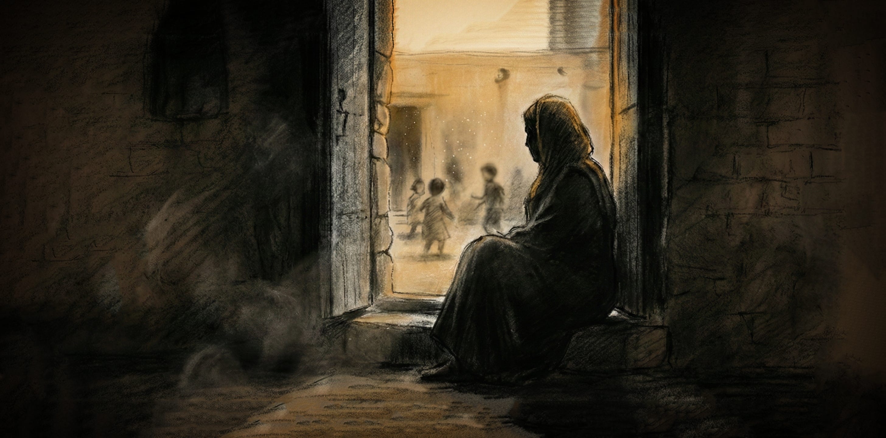 In the courtyard of their kinsman’s house, six of them played together most afternoons. Wrestling, chasing, building towers from broken pottery and watching them fall. Mary sat in the doorway. Always in the doorway.