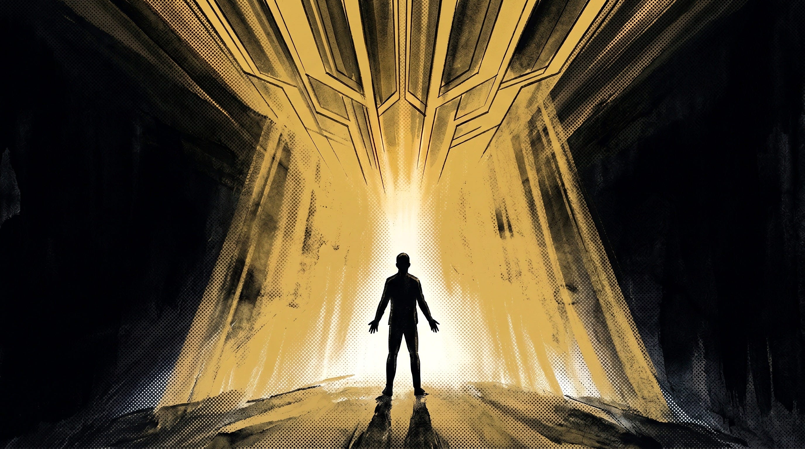 Two revelations arriving at the same time. One from above. One from within. Both pointing at the same question. The one underneath both.