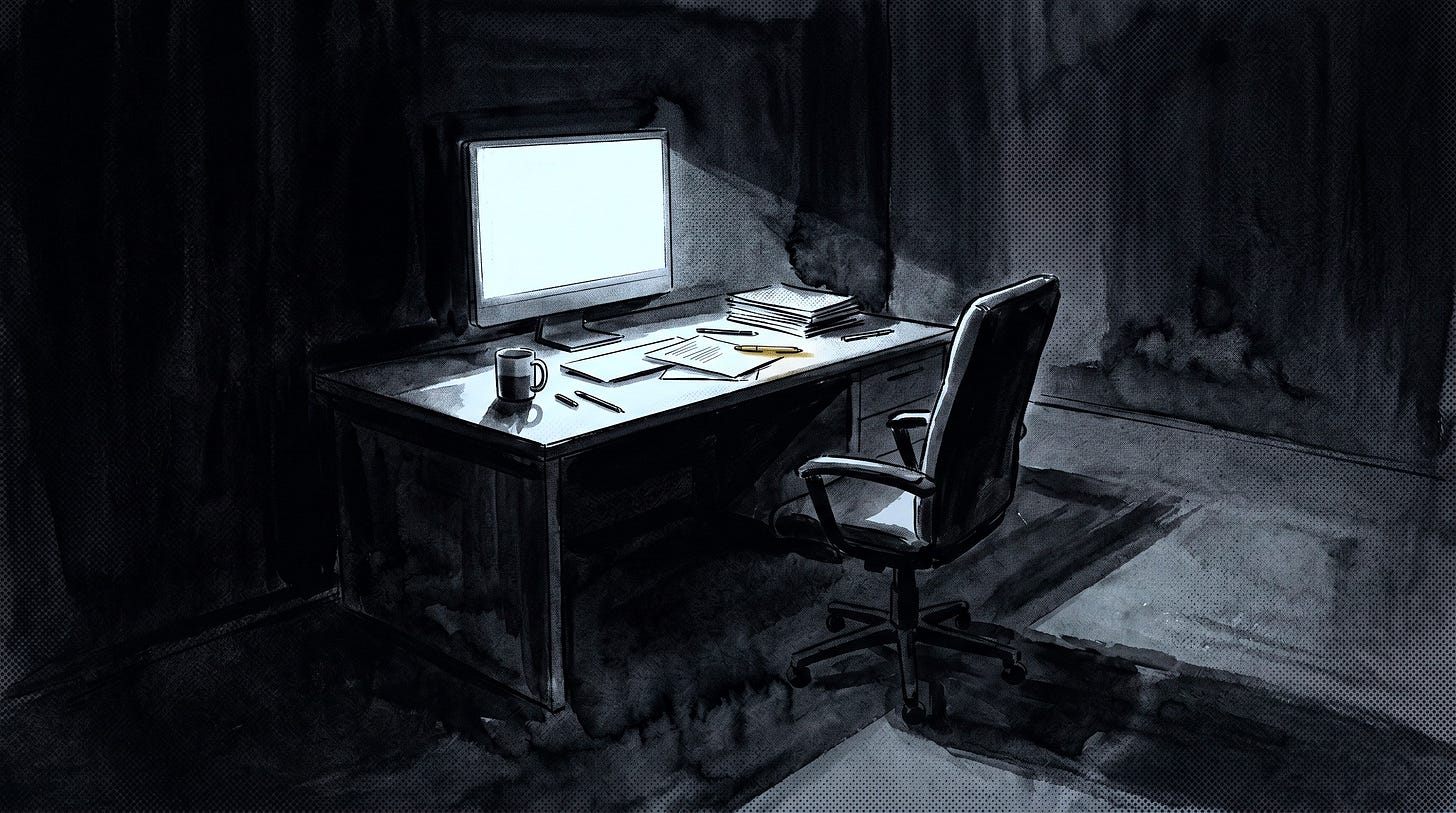 And the machine takes it all, and the human becomes that empty chair in front of the glowing screen.