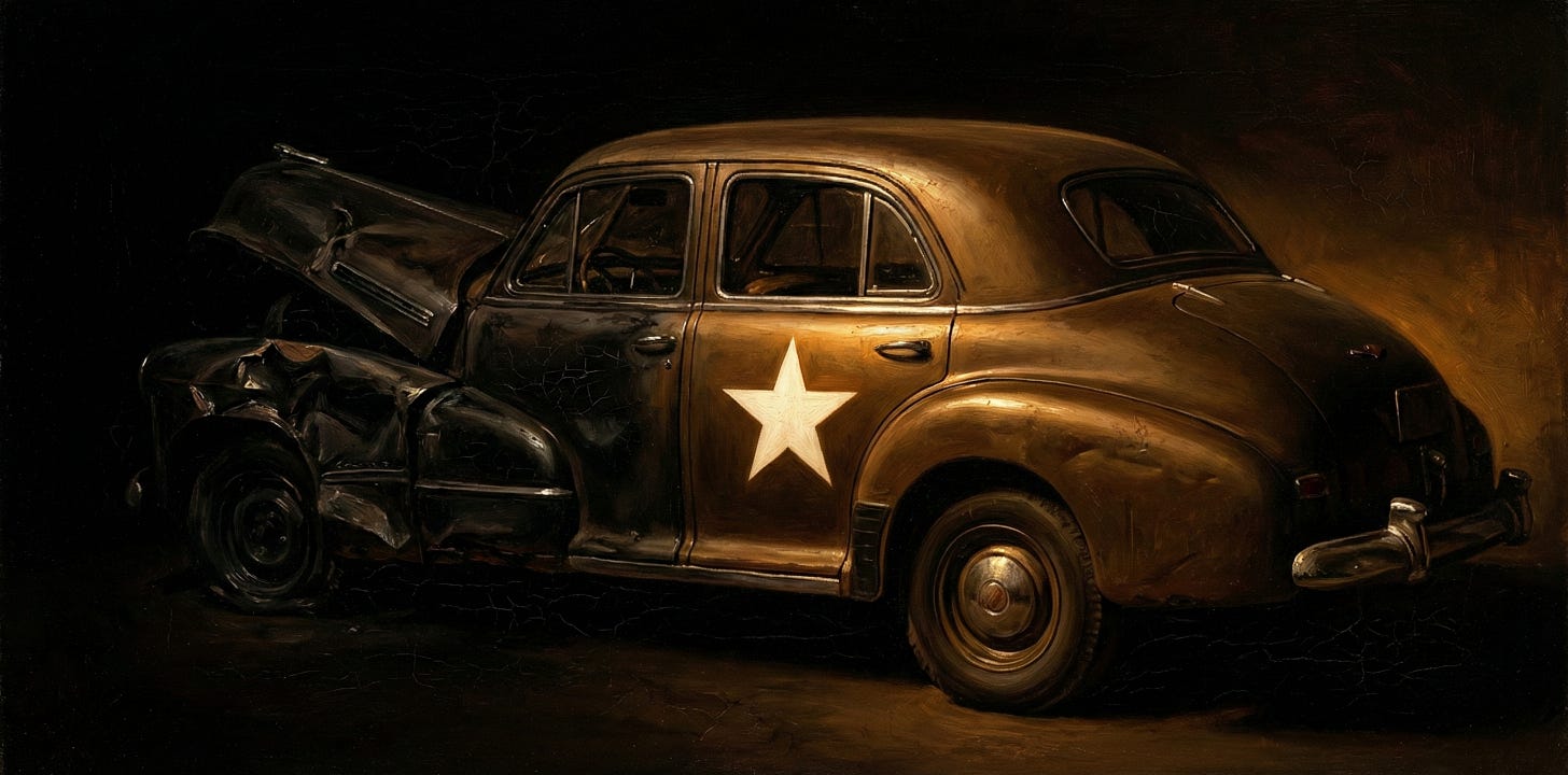 December 9, 1945. A slow-moving Army truck turned in front of his Cadillac on a clear morning outside Mannheim.