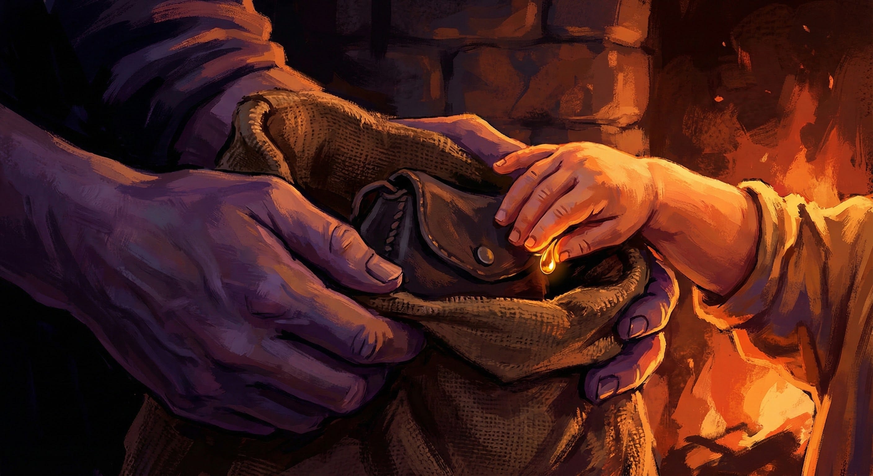Mary caught the pouch against her chest and moved to shove it into the sack, but the drawstring was loose. The child, Yeshua, reached out from her arms.