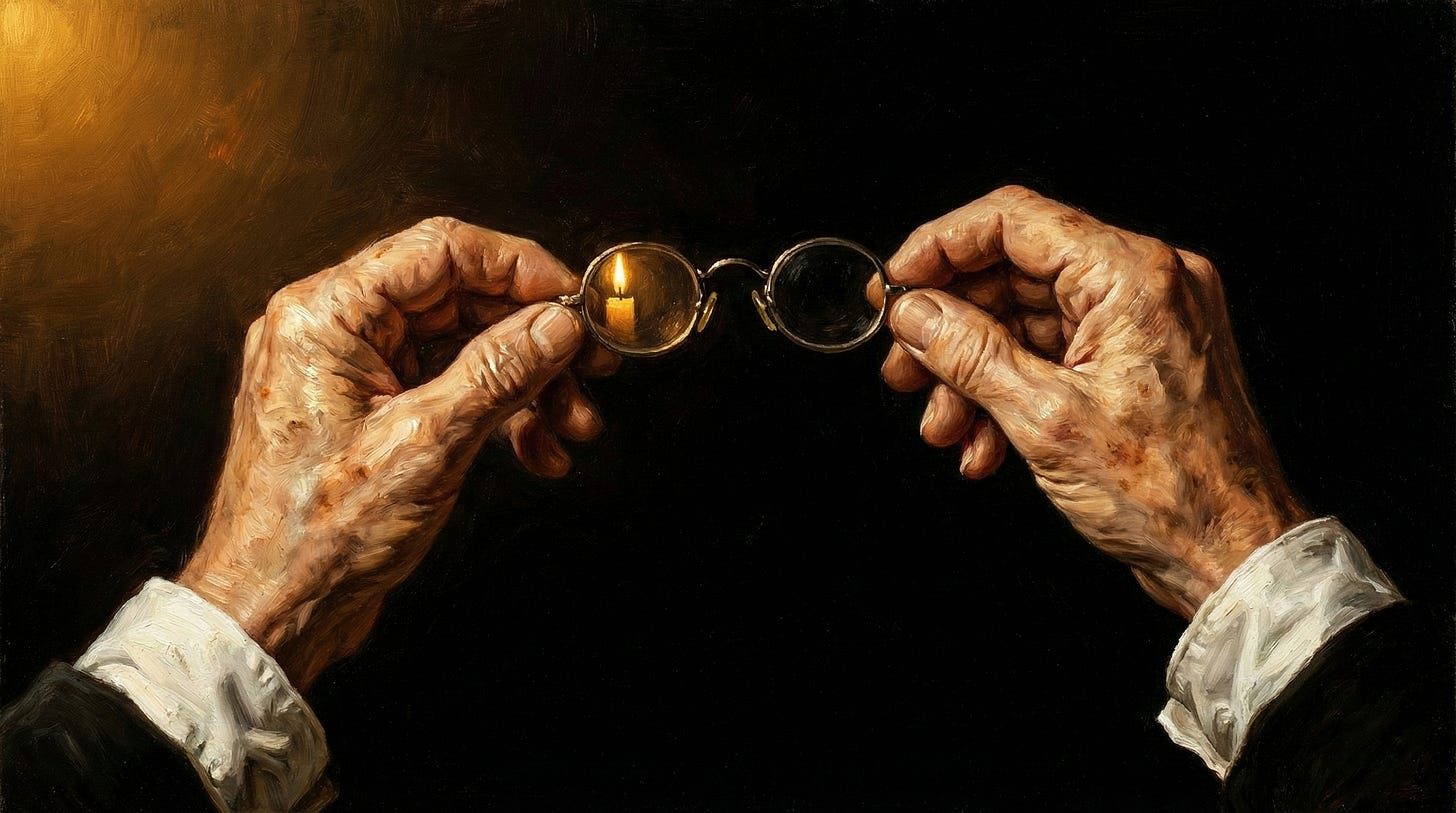 Washington walked into a room full of mutinous officers at Newburgh. Hard men ready to overthrow the infant government. He pulled out a letter to read to them. They weren’t moved. Then he reached into his coat pocket for something none of them had ever seen him use: reading glasses. His hands trembled. He looked at the paper, then at them.