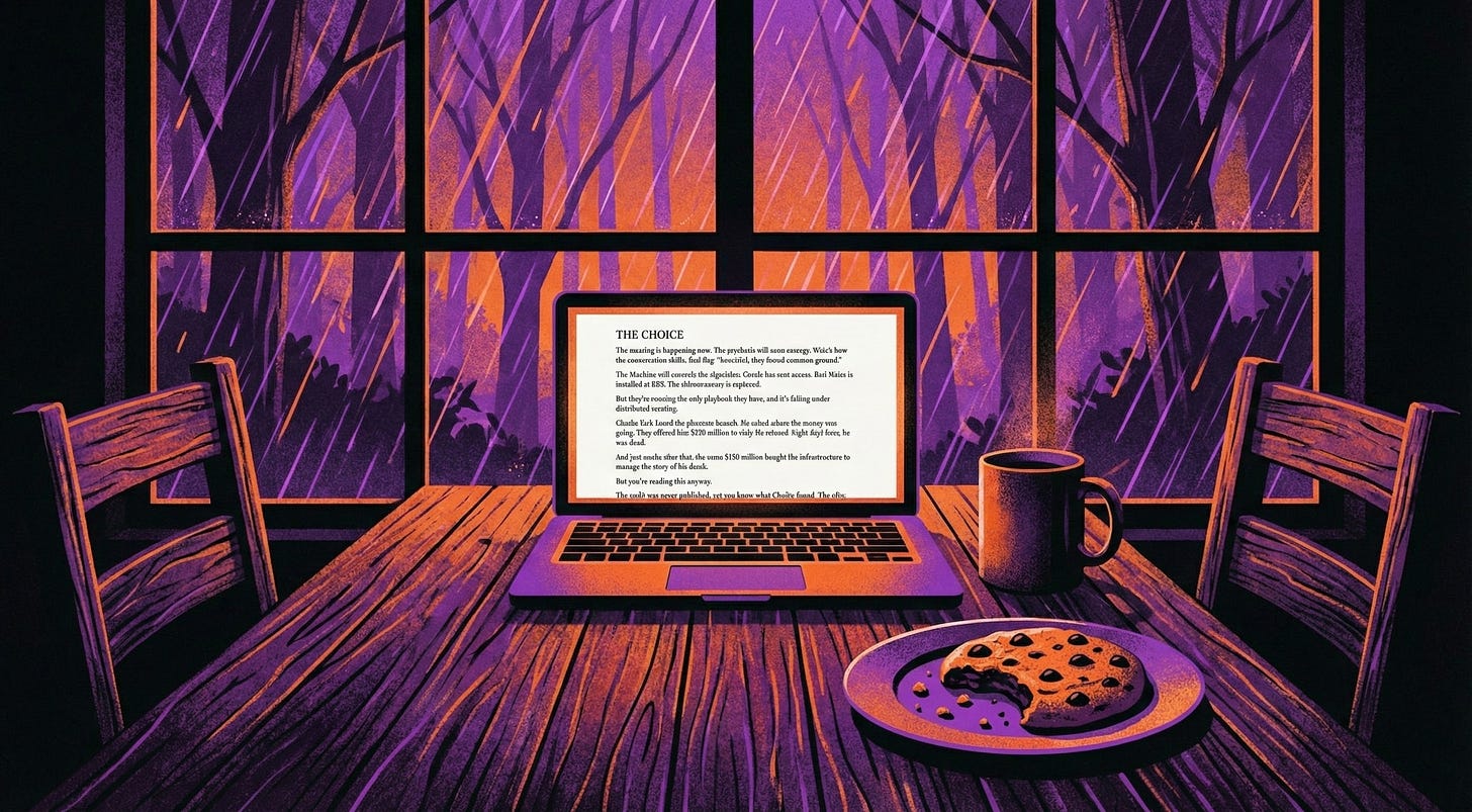 The audit was not published (yet), but you know what Charlie found. The offer was secret, but you see the pattern. The connection was never drawn by mainstream sources, but you see the architecture.