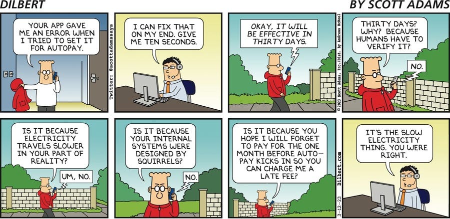 I learned to read sprawled out on the floor of my dad’s office in my underwear, working through stacks of Dilbert collections. I was almost six. I didn’t understand half the corporate jokes. But something about that bespectacled engineer and his quiet resistance to pointy-haired authority planted a seed I didn’t know I was carrying.