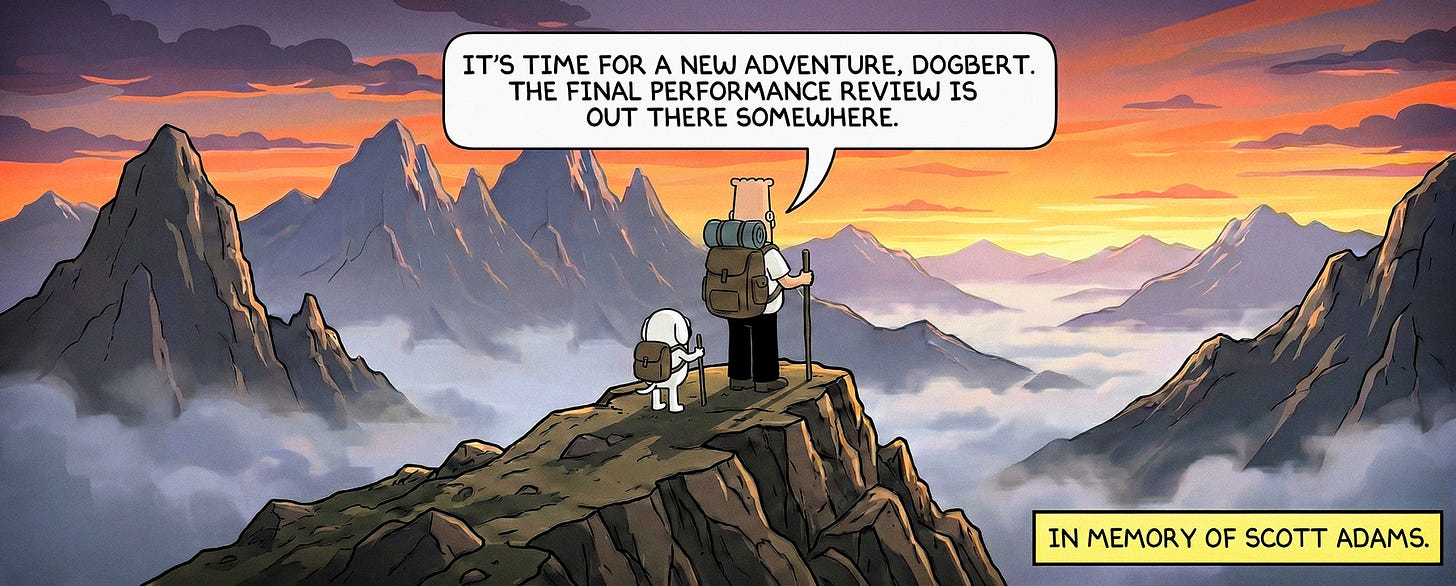 I never met Scott Adams. Never exchanged a single message with him. But I learned to read on his humor. I learned to see political reality through his breakdowns. I learned to treat my creative output as a batting average rather than a referendum on my worth.